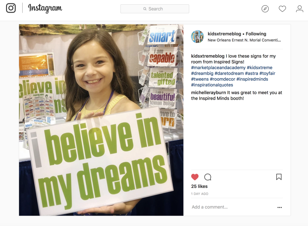 One of the bloggers we met in New Orleans at the ASTRA Marketplace and Academy retailer show has featured Inspired Minds on Instagram. We enjoyed meeting this young blogger from kidsxtreme.com.